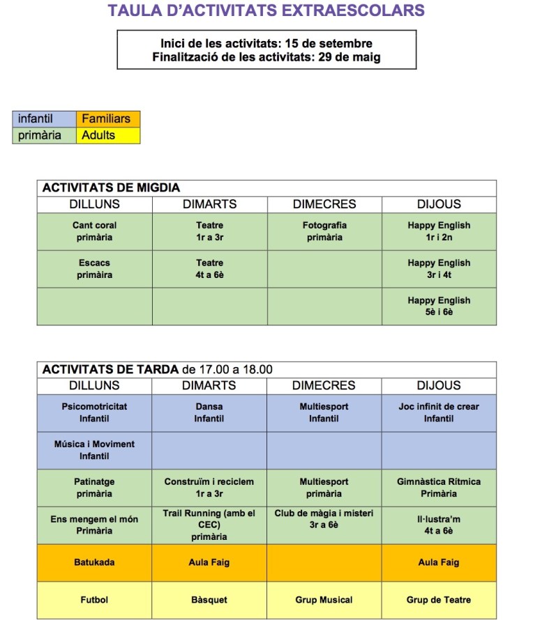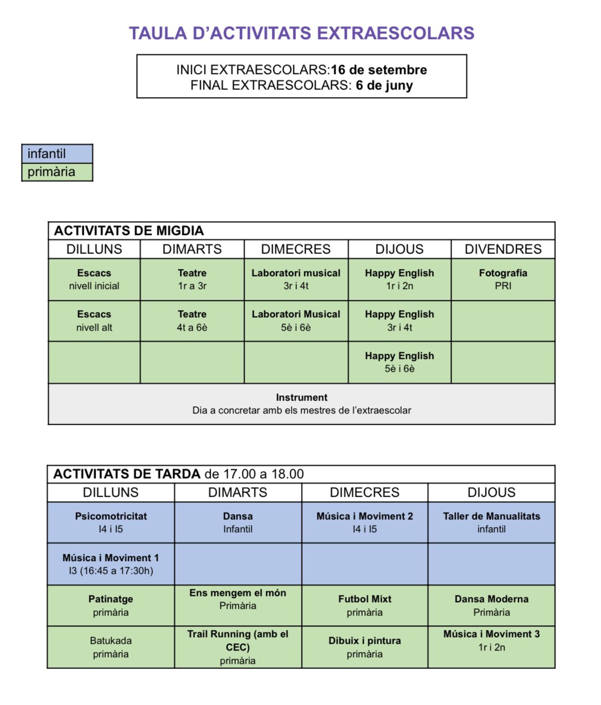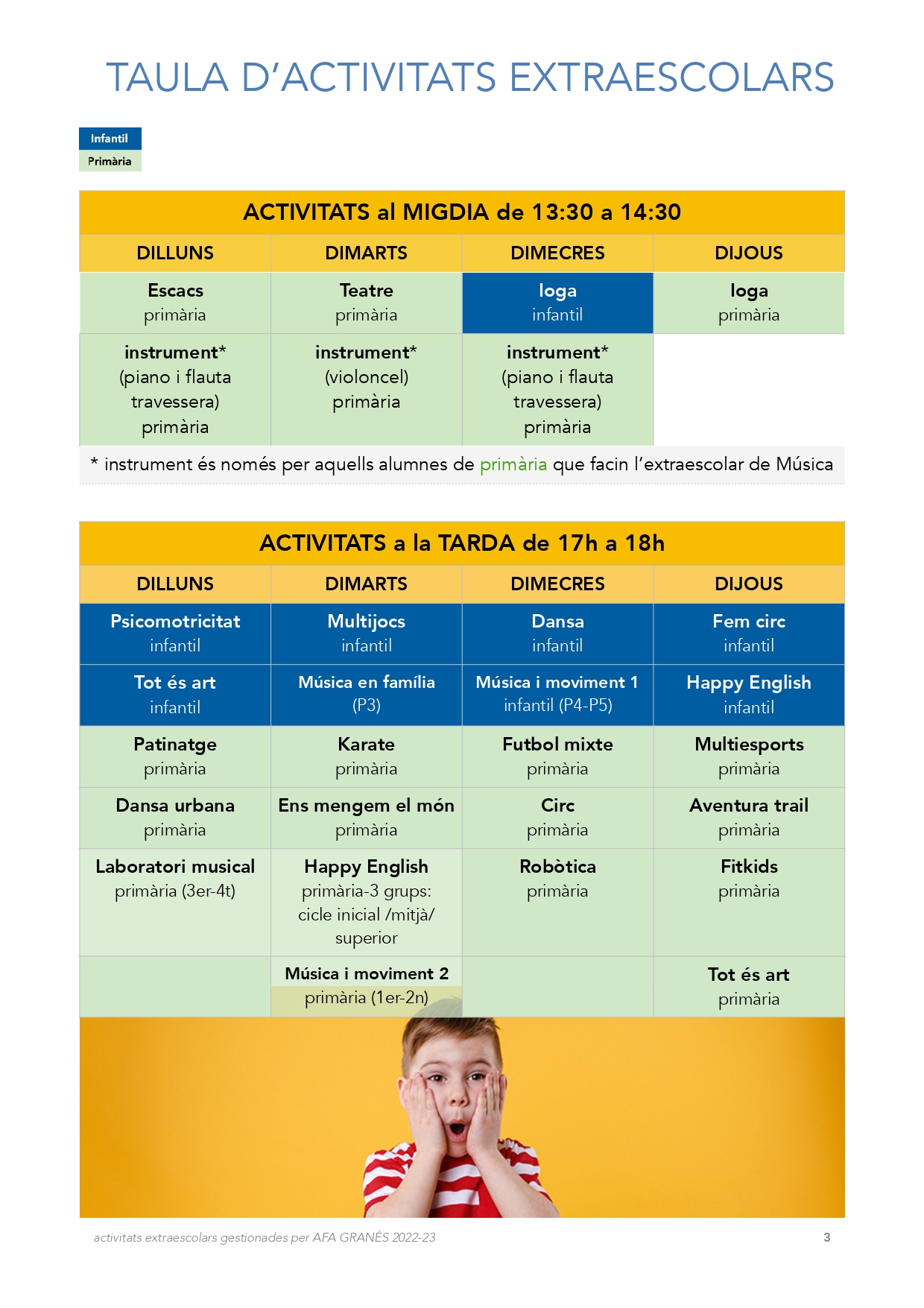 Podeu trobar tota la informació de les activitats extraescolars a: https://afagranes.com/extraescolars_25-26/ i del servei d’acollida a: https://afagranes.com/servei-dacollida.