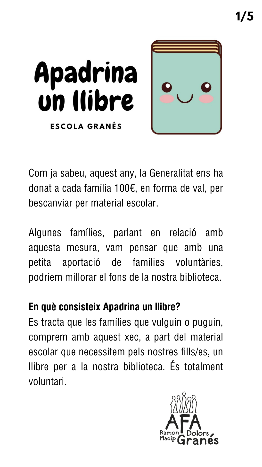 A la web www.afagranes.com trobareu informació de tot el que fem a l’AFA: el calendari escolar, les activitats extraescolars, informació sobre el servei d’acollida, els menús del menjador, les comissions en què s’organitza l’AFA, etc. I també ens podeu seguir a les xarxes socials: Facebook i Instagram.