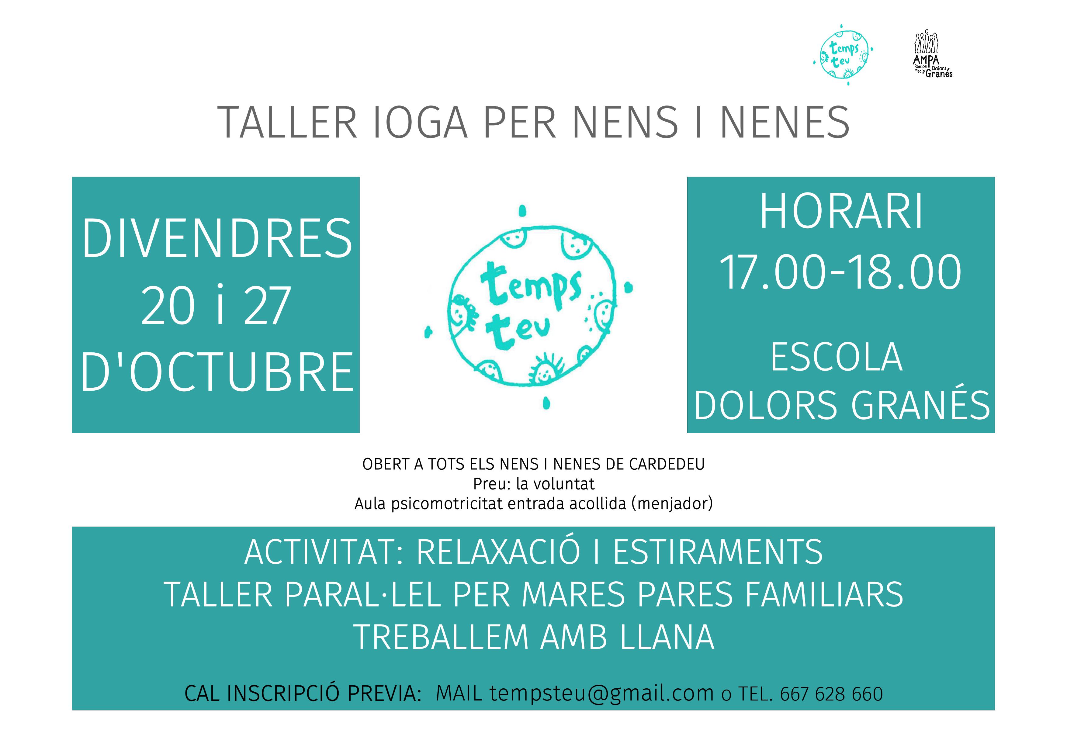 Temps teu ha programat pels propers divendres 20 i 27 d’octubre un taller per a nens i nenes de ioga mentre els pares i les mares podran treballar diferents projectes amb llana.