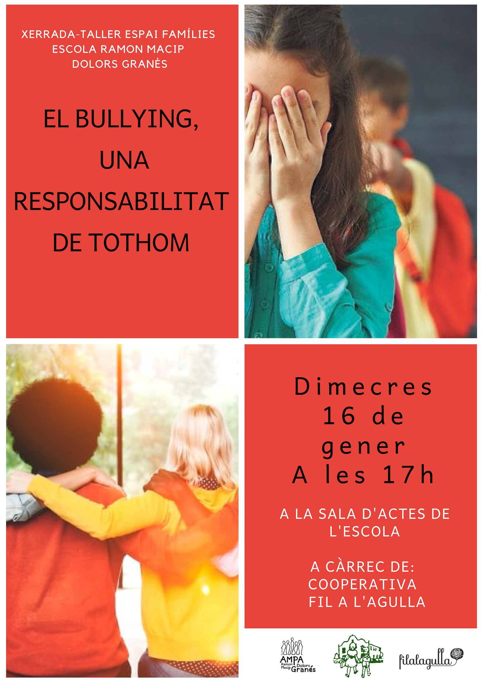 - 4 de novembre de 2016: xerrada espai famílies “Vincles entre família i escola”a càrrec de Neus Barceló. Podeu descarregar-vos la informació AQUÍ!