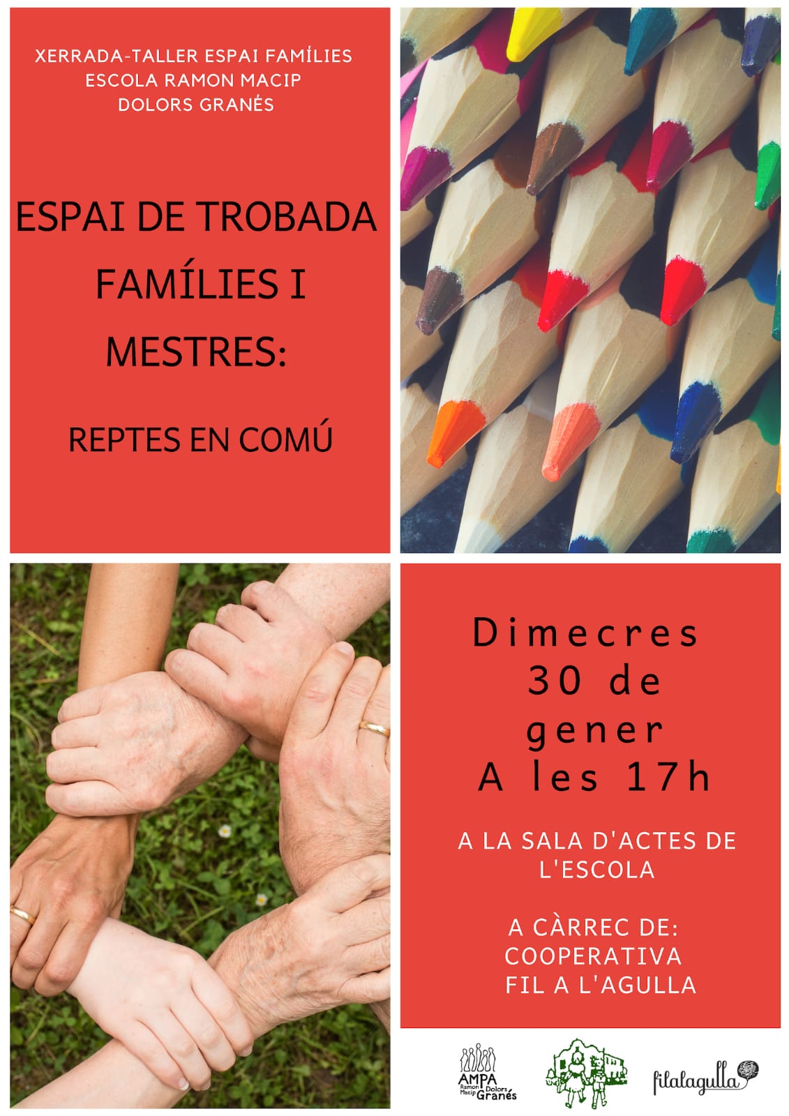 - 1 de desembre: Presentació del projecte de Coeducació. Espai per compartir recursos i atendre preguntes i inquietuds de les famílies de l’escola.